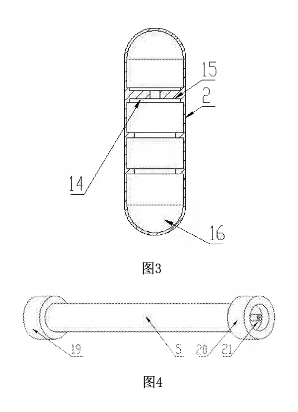 磁浮球呈膠囊狀且內(nèi)部設(shè)有空腔,磁浮球一端開口,磁浮球的空腔內(nèi)安裝有兩個(gè)加強(qiáng)支撐環(huán),兩加強(qiáng)支撐環(huán)之間安裝有環(huán)形**強(qiáng)磁鋼塊,磁浮球開口端焊接有封堵頭,磁浮球質(zhì)量較輕,可以在液位計(jì)主體的磁浮球通道中浮起,兩個(gè)加強(qiáng)支撐環(huán)一方面可以保證磁浮球不會(huì)在受到較大壓力時(shí)發(fā)生形變,另方面可以固定環(huán)形**強(qiáng)磁鋼塊,環(huán)形**強(qiáng)磁鋼塊增大了磁浮球與磁翻板的磁耦合強(qiáng)度,使環(huán)形**強(qiáng)磁鋼塊在磁浮球內(nèi)更加穩(wěn)定,焊接的封堵頭有效保證磁浮球內(nèi)部不會(huì)進(jìn)入液體,增長了使用壽命。