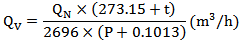 公式中Qv為工作狀態(tài)下的體積流量(m3/h);QN為標準狀態(tài)下的氣體體積流量(m3/h);t為工作狀態(tài)下的溫度(℃);P為工作狀態(tài)下的表壓(MPa)。
