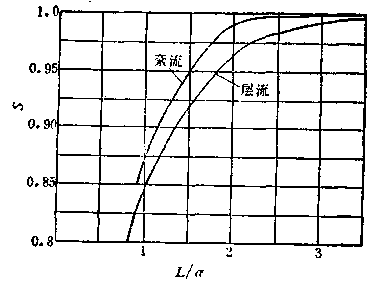 (3-47)顯然,我們希望S值越接近于1越好。也就是說(shuō),希望磁場(chǎng)軸向長(zhǎng)度為有限長(zhǎng)時(shí)電極上產(chǎn)生的感生電動(dòng)勢(shì)盡可能接近于無(wú)限長(zhǎng)時(shí)的值.若以L/d表示磁場(chǎng)軸向長(zhǎng)度與管道內(nèi)徑之比,則根據(jù)計(jì)算,在測(cè)量管是絕緣管壁的條件下,S與L/d的關(guān)系如圖3—35所示.由圖可知,在保證S=0.99的情況下,L/ d的比值范圍大致為L(zhǎng)/d=2.8—3.04.這就是說(shuō),為了減少磁場(chǎng)地緣的影響,勵(lì)磁線圈的長(zhǎng)度應(yīng)為測(cè)量管內(nèi)徑的2. 8—3.04倍,這樣才可以使電極上產(chǎn)生電動(dòng)勢(shì)接近于無(wú)限長(zhǎng)磁場(chǎng)時(shí)的值。