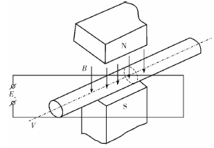 電磁流量計(jì)是利用法拉第電磁感應(yīng)定律設(shè)計(jì)的流量測(cè)量?jī)x表,用于測(cè)量導(dǎo)電液體的體積流量。根據(jù)法拉第電磁感應(yīng)定律,當(dāng)導(dǎo)體切割磁力線運(yùn)動(dòng)時(shí),導(dǎo)體內(nèi)將產(chǎn)生感應(yīng)電動(dòng)勢(shì)Ex(圖1),方向根據(jù)右手定則確定,感應(yīng)電動(dòng)勢(shì)Ex的大小與磁場(chǎng)的磁感應(yīng)強(qiáng)度B、傳感器管道的內(nèi)徑D和流過(guò)導(dǎo)電液體的流速V成正比,B、D、V三者相互垂直,即Ex=BDV。