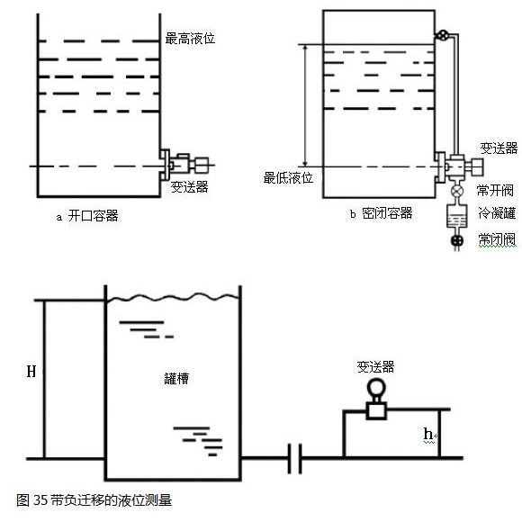 1)差壓式液位變送器測量液位,。法蘭式液位變送器的安裝與使用,見圖37。