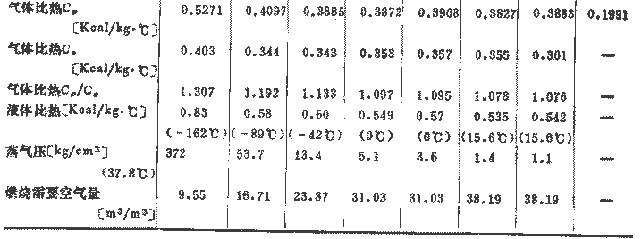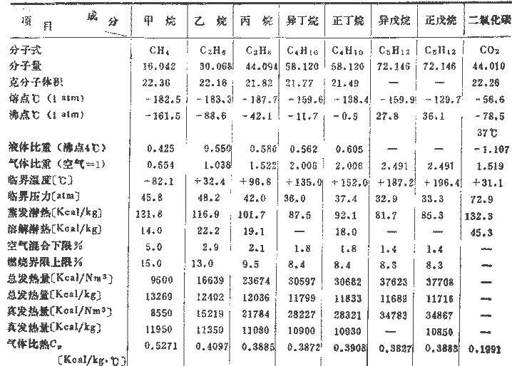 表2 液化天然氣成分物質(zhì)的物理常數(shù)