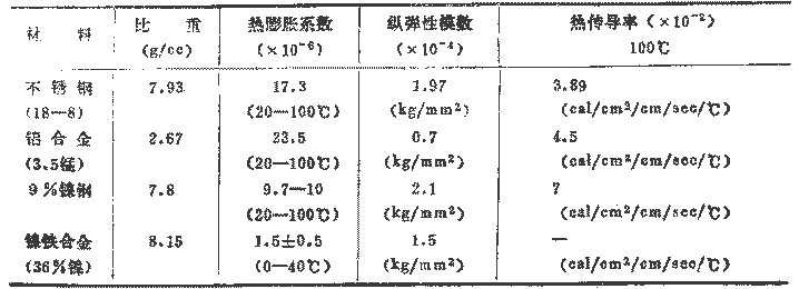 表4低溫材料的物理性質(zhì)