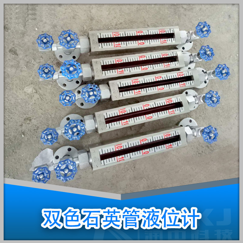 UGS石英管雙色液位計(以下簡稱彩色液位計)是彩用國內(nèi)外新技術(shù)研制而成。它是利用自然光在液體中折、反射原理,借助于紅、綠片,在測量時,使液相顯示綠色,氣相顯示為紅色。由于液氣相顯示反差大,指示鮮明清晰,所以對遠(yuǎn)距離操作和夜巡視更為有利。如果帶LED光源則顯示會更清晰。因此被**用于石油、化工、電力、冶金等行業(yè)的各種透明液體容器和鍋爐上,如水、汽油、液化氣、液氨、丙烷、丙烯、芳烴、酸等油品和化工原料的液位測量。同時對于兩種不同介質(zhì)密度的界面測量,可選用三色界面石英管液位計。三色界面石英管液位計是利用浮力與比重差的原理而設(shè)計的,石英管中的小浮子懸浮于兩種介質(zhì)的分界部分,由于浮子呈黑色,上下部分液體顏色有異,所以顯示醒目。從而解決了一直困擾在石油化工生產(chǎn)過程中兩種混合介質(zhì)界面分辨不清的難題。它是目前國內(nèi)外理想的直讀式液位計。